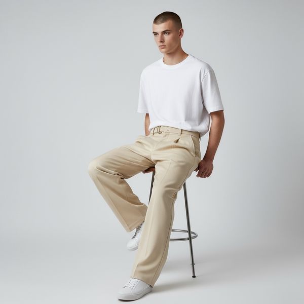 شلوار پارچه ای نیم بگ SOOMARO - رنگ نسکافه ای